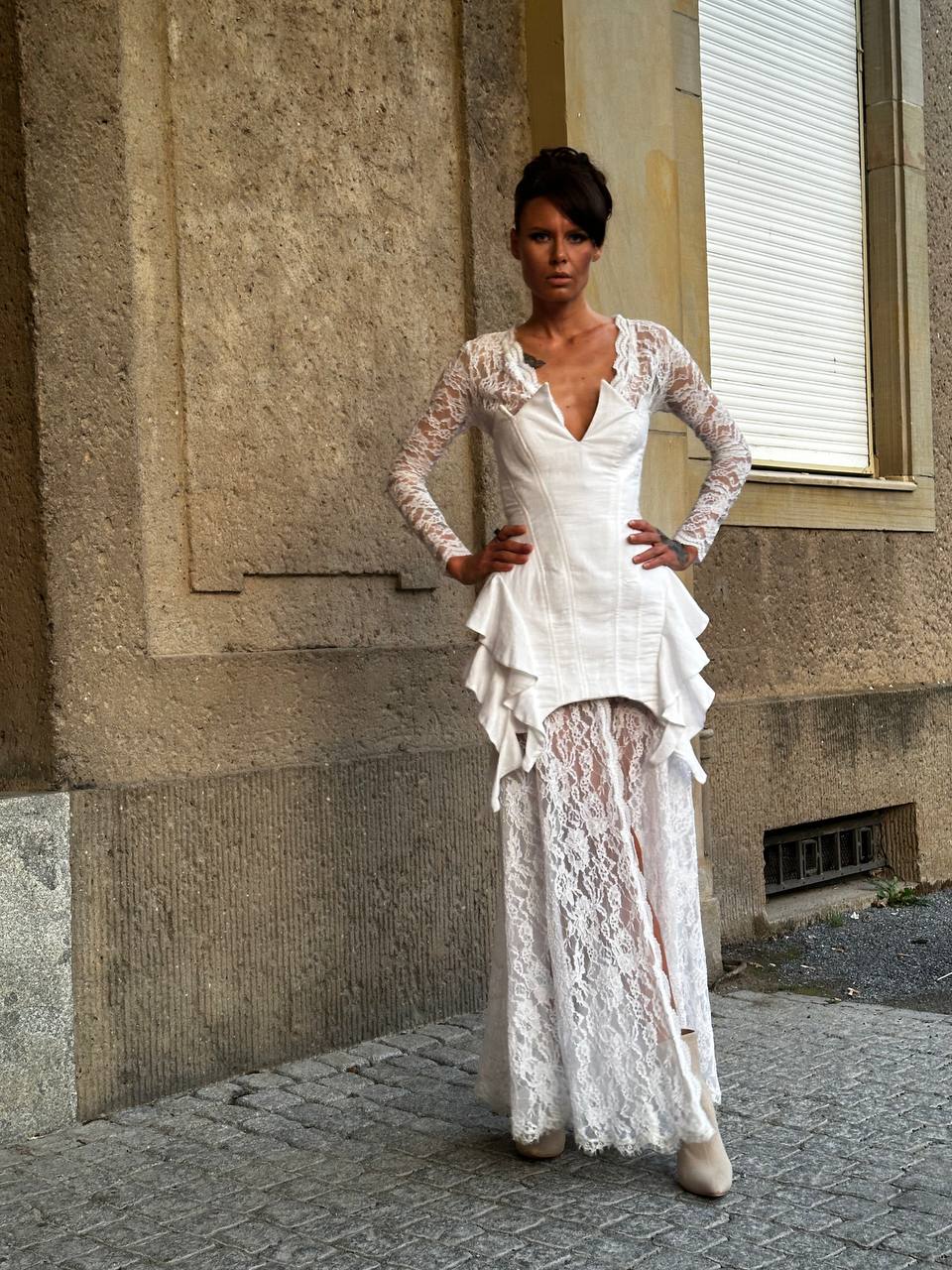 Изысканный дуэт, где воздушное кружево встречается с благородным льном, создавая гармонию нежности и чувственности. Кружевной халат с тончайшими узорами мягко обволакивает фигуру, играя полупрозрачными переходами и подчеркивая изящество линий.